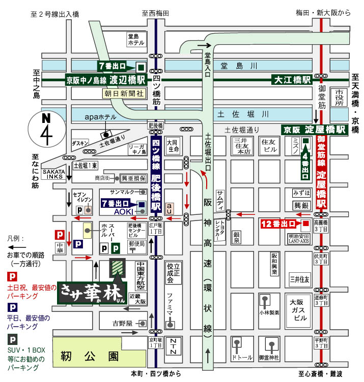 南へ2筋目、中国東方航空と〒局の筋を右へ約24m左側(蔵風の白い平家) ○地下鉄御堂筋線、淀屋橋駅12番出口から道沿いに、西へ約300m、肥後橋センタービルを左、中国東方航空と〒局の筋を右へ24m左側 ○京阪電車、淀屋橋駅4番出口から道沿いに、西へ約300m、阪神高速のガード下を超えて四ツ橋筋(肥後橋交差点) の信号を渡り、左へ(南へ約300m)中国東方航空と〒局の筋を右へ24m左側 ○京阪中ノ島線、渡辺橋駅7番出口から 右へ信号を渡り、道沿いに南へ約400m、 所在地:〒550-0003 大阪市西区京町堀1丁目6-21「さサ華林」 お問い合わせは  tel/06-6449-5481 さサ華林(トップページ) |